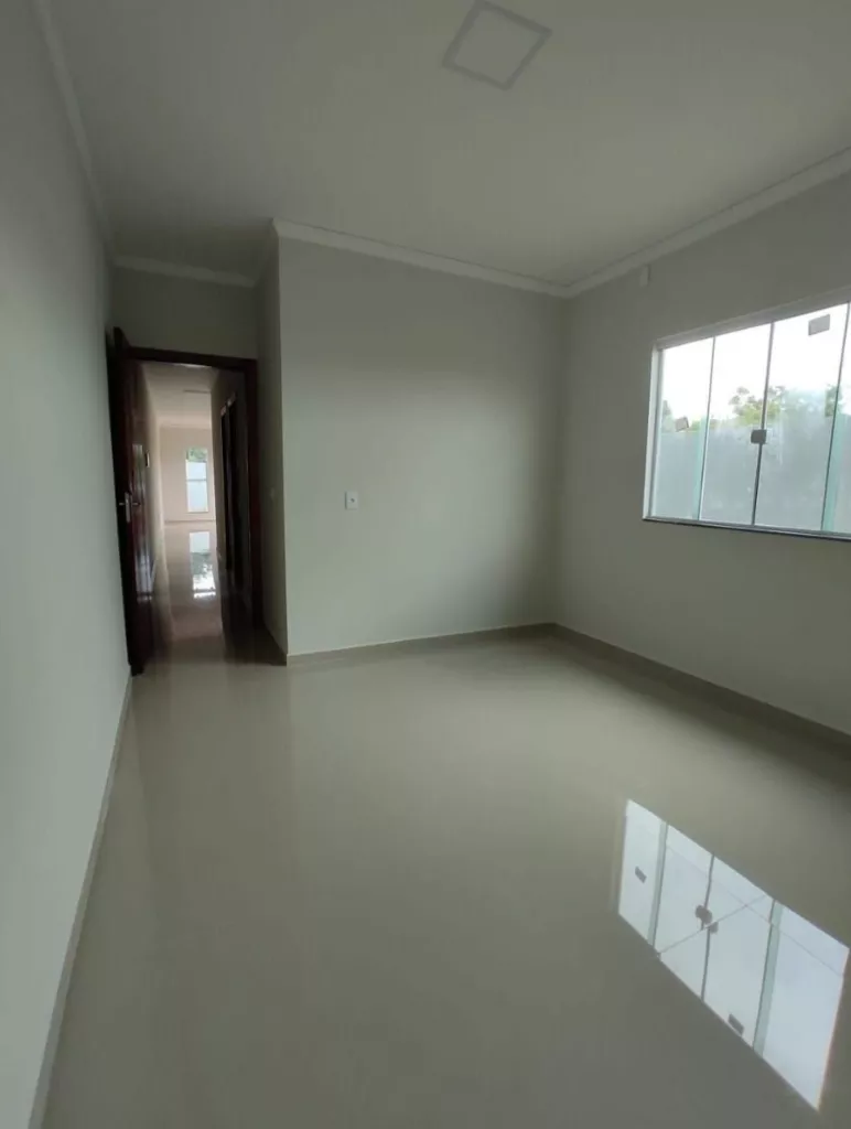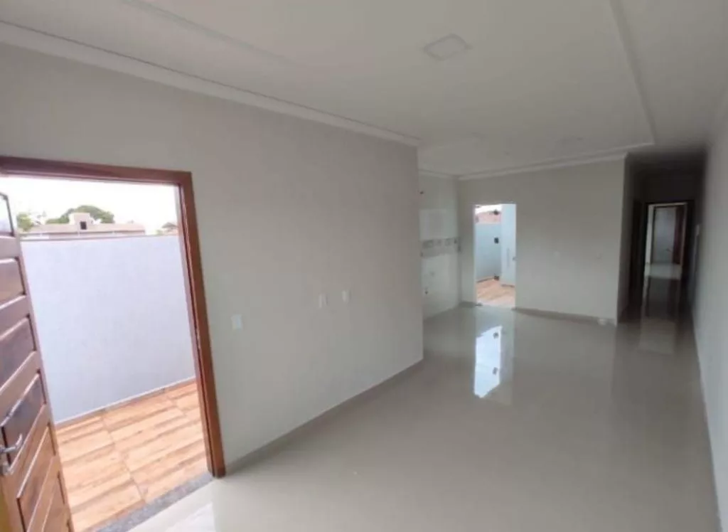 Dispostas em: 2 quartos sendo 1 suíte, sala e cozinha conjugada, banheiro social, lavanderia coberta, 2 vagas de garagem e quintal aos fundos.