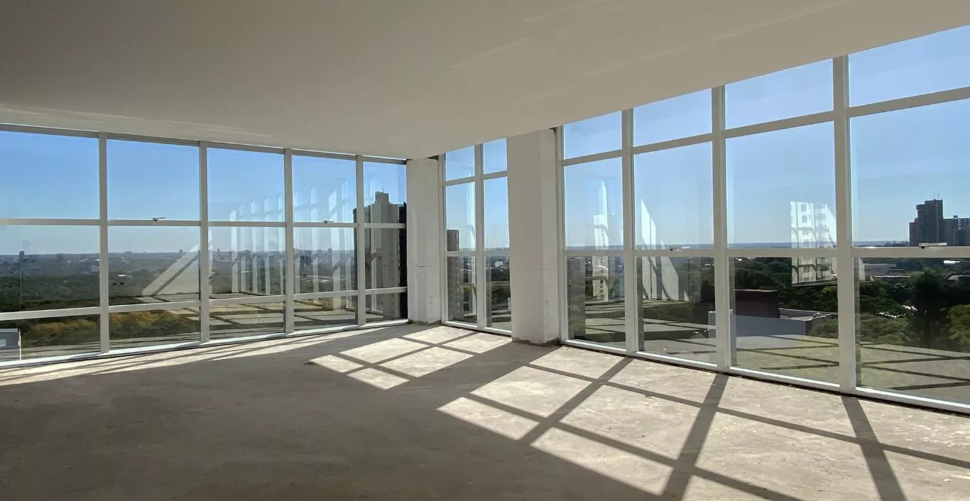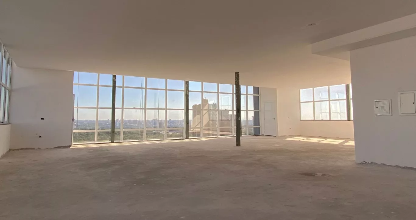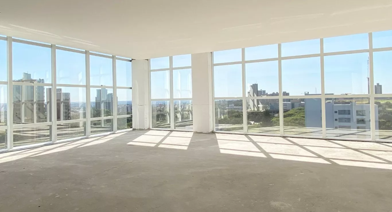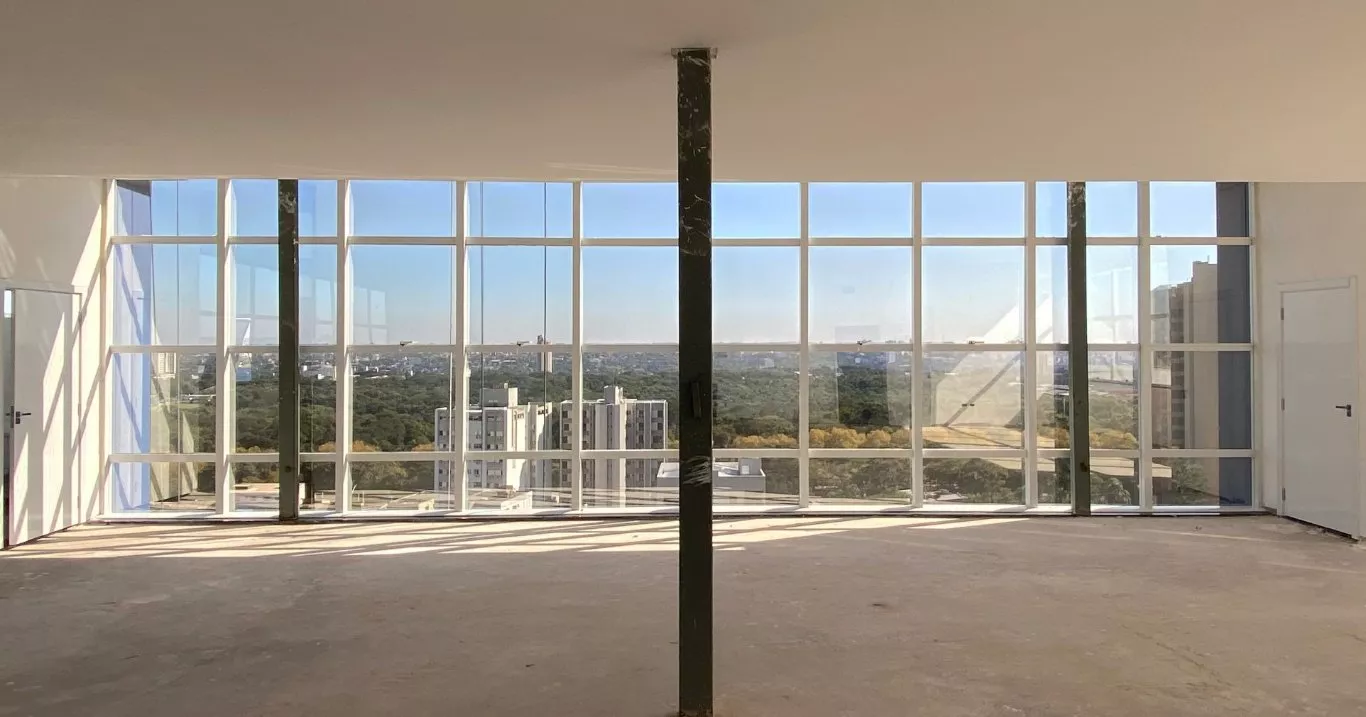 Salas do 7º e 8º andar com 90 e 180 m² de área privativa, proporcional uma bela paisagem onde o concreto e a natureza se encontram.