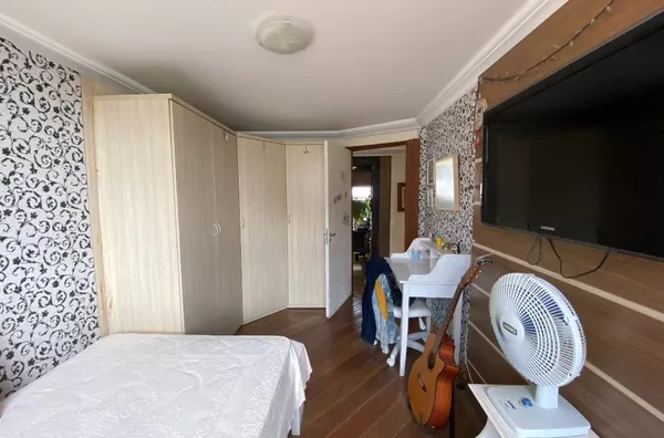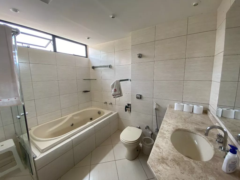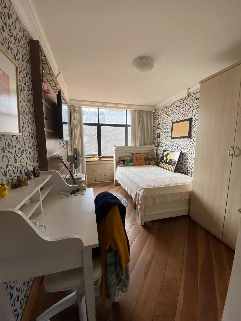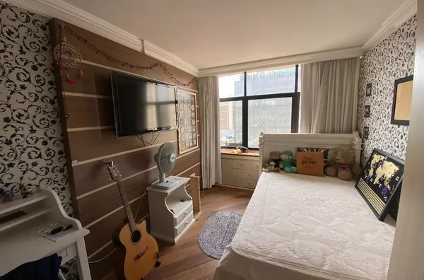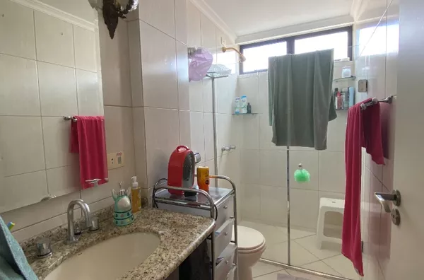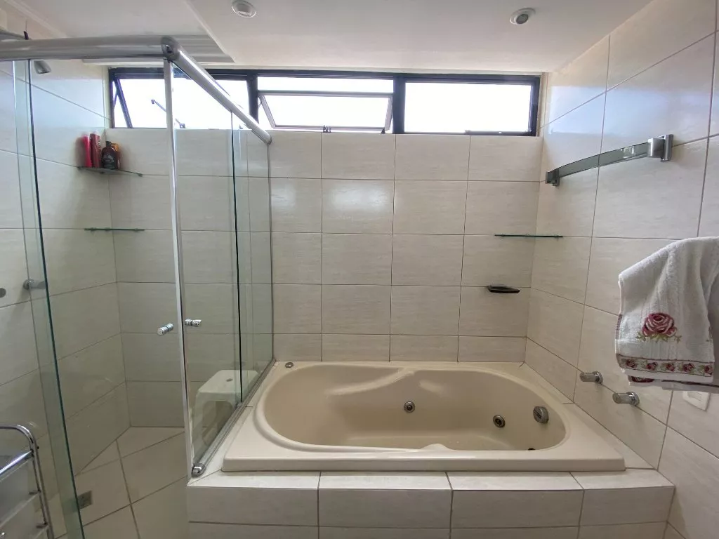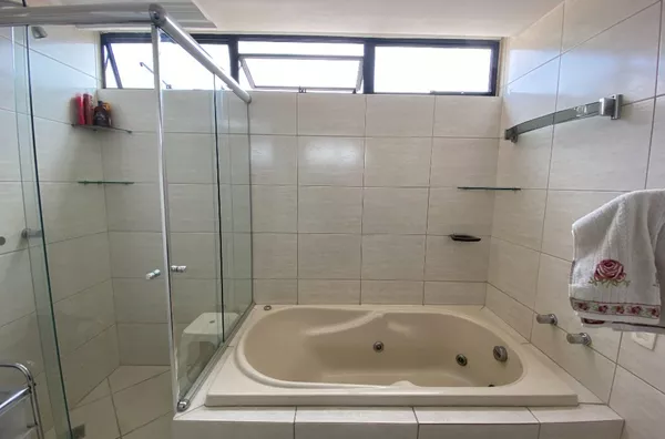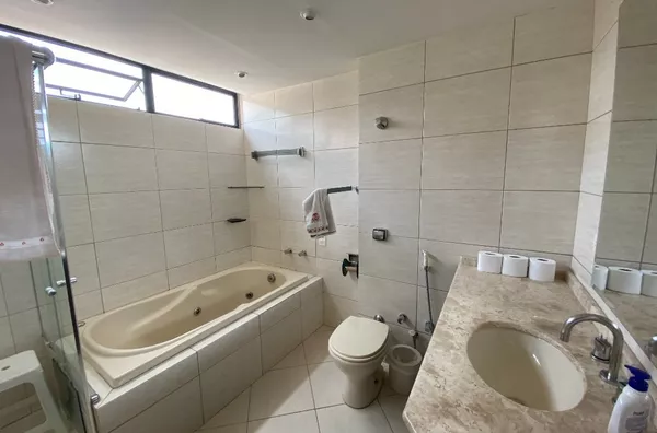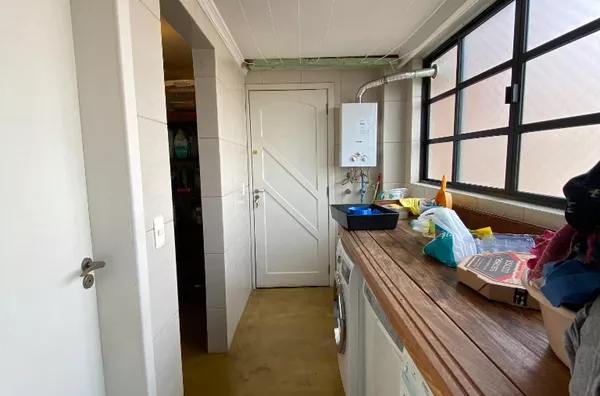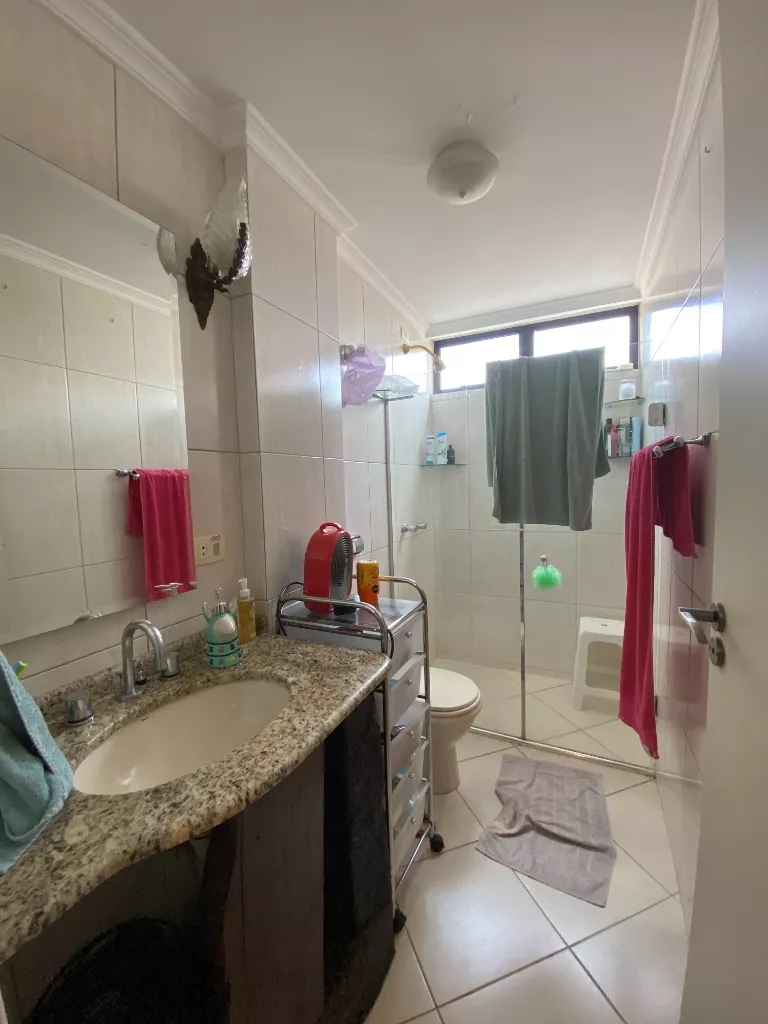 Mobiliado, com espaço amplo (162 m2) e bem distribuído, contando com armários embutidos nos quartos e cozinha, o apartamento conta com uma suíte master (com closet) e hidromassagem, mais dois quartos, ampla sala, despensa, um banheiro social, um lavabo, um banheiro de serviço e uma da área de serviço.