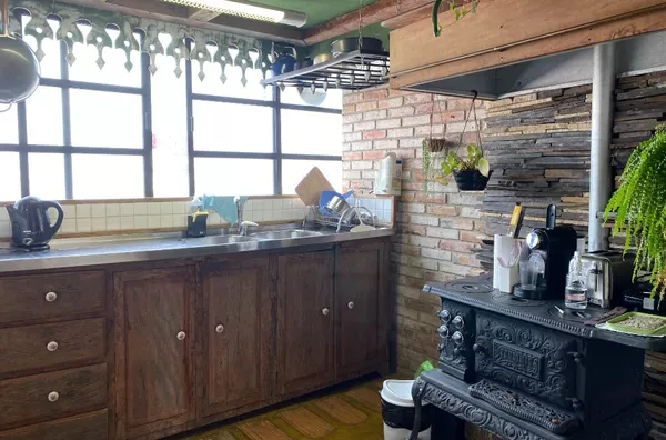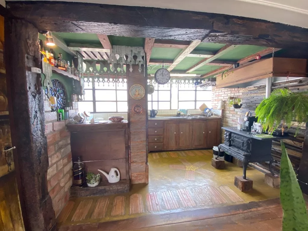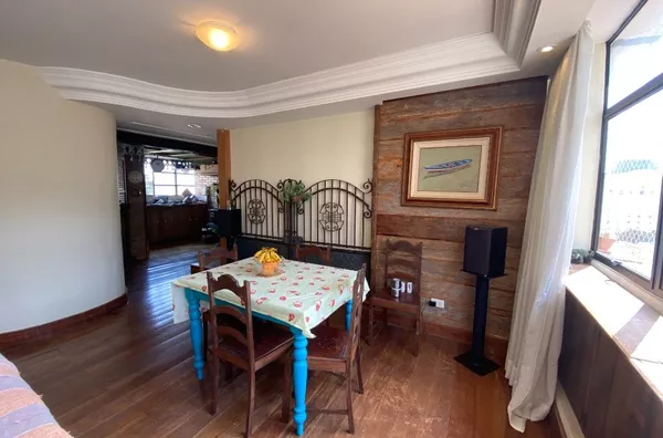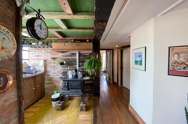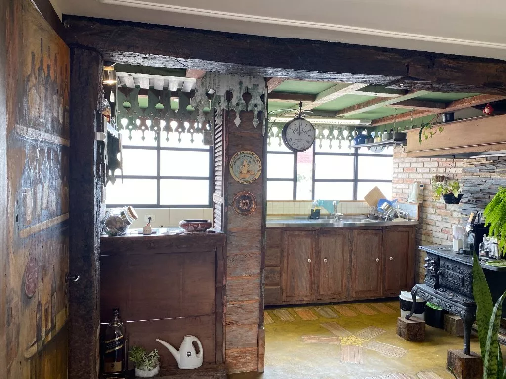 O piso em tabuas de madeira oferece muito conforto nos dias mais frios em virtude do isolamento térmico natural do material, tornando o ambiente bem aconchegante para o clima curitibano.