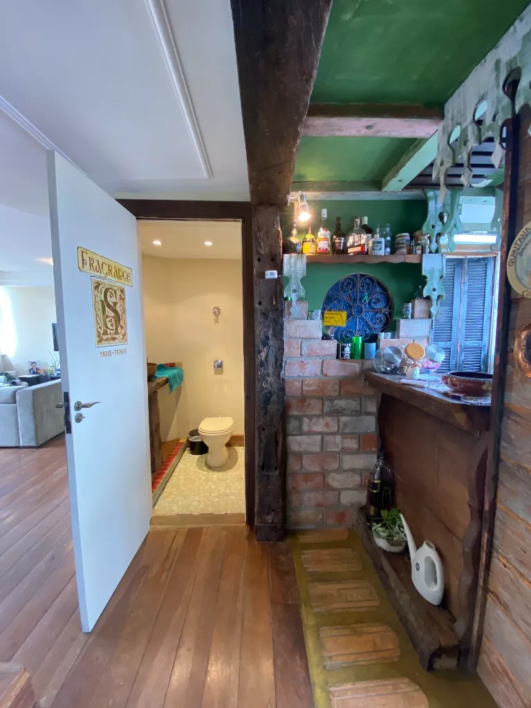 Características: Móveis Planejados, Portão Eletrônico, Aquecimento à gás, Aquecimento elétrico, Armários de cozinha, Armários sob medida, Box tipo Blindex, Cama, Closet, Despensa, Elevador Panorâmico, Elevador Social e de Serviço, Imóvel Mobiliado, Interfone, Lavanderia, Molduras de Gesso, Paver, Sancas em gesso, Sofá, Suíte master (com closet), Tubulação de Gás, Vaga de Garagem. Cômodos: Cozinha, Despensa, Cozinha americana, Sala, Suíte Master.